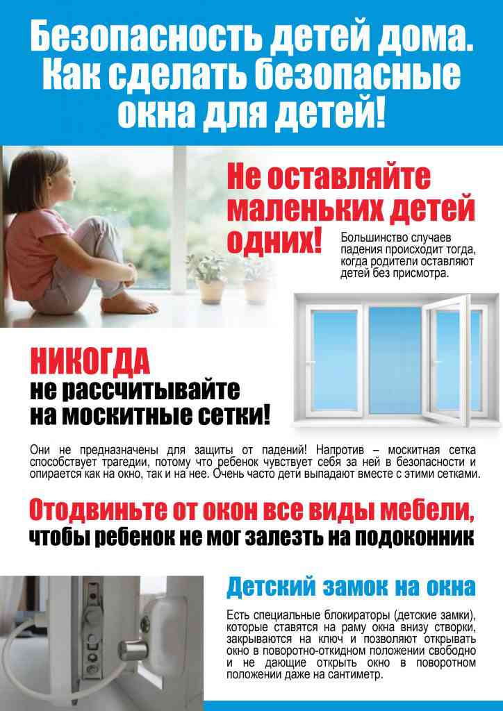 - ребенок не может находиться без присмотра в помещении, где открыто настежь окно или есть хоть малейшая вероятность, что ребенок может его самостоятельно открыть;